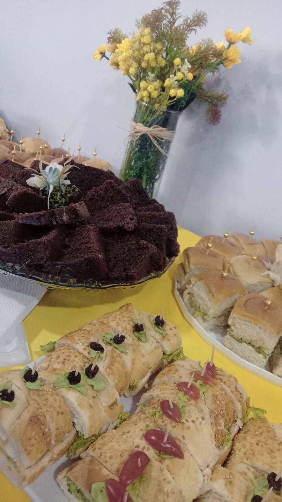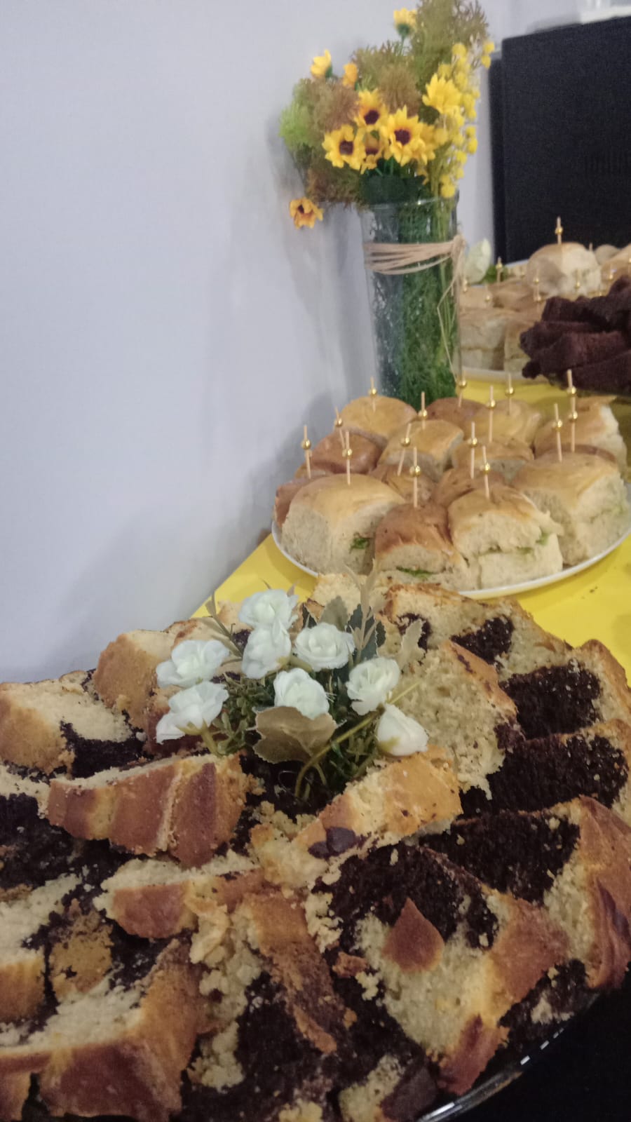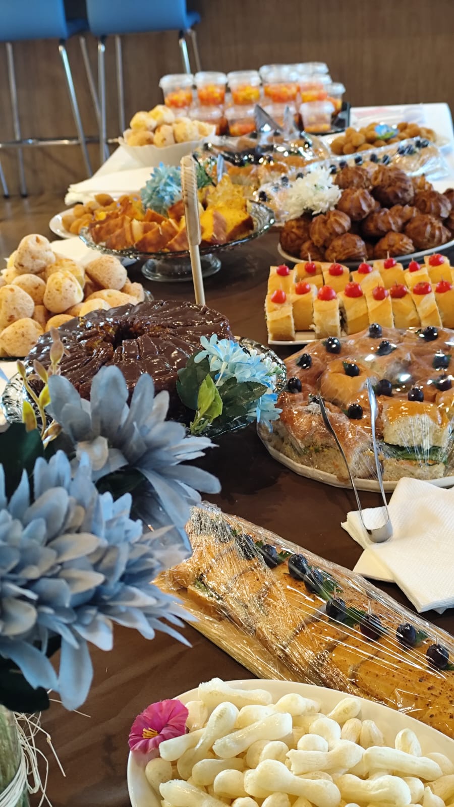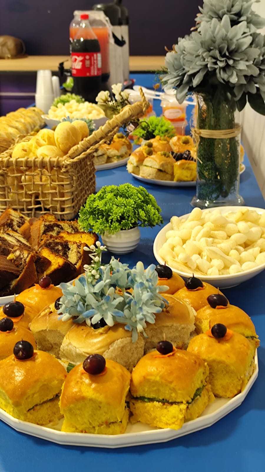 Oferecemos uma variedade de doces, bolos, pães especiais, salgados, sucos, café, chá, água e muito mais. O cardápio pode ser adaptado conforme a necessidade do evento.
