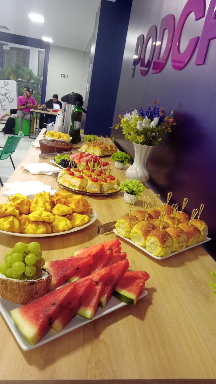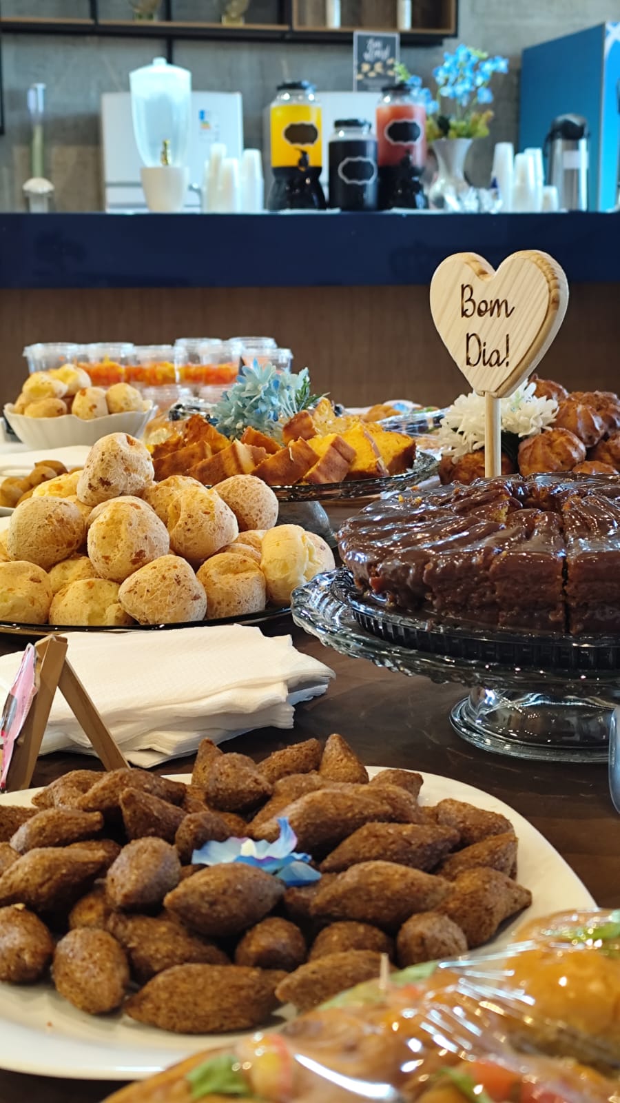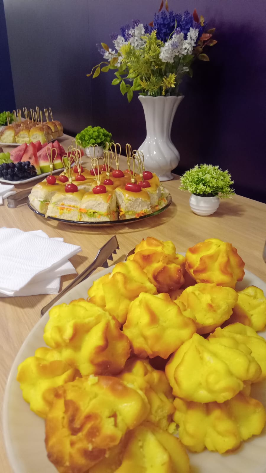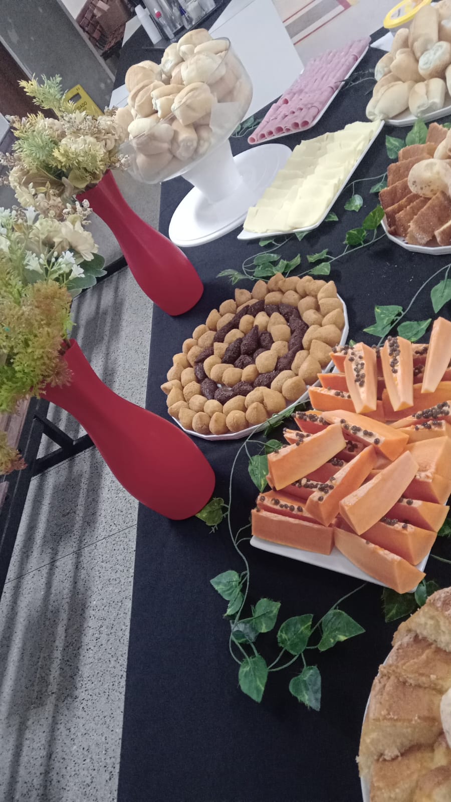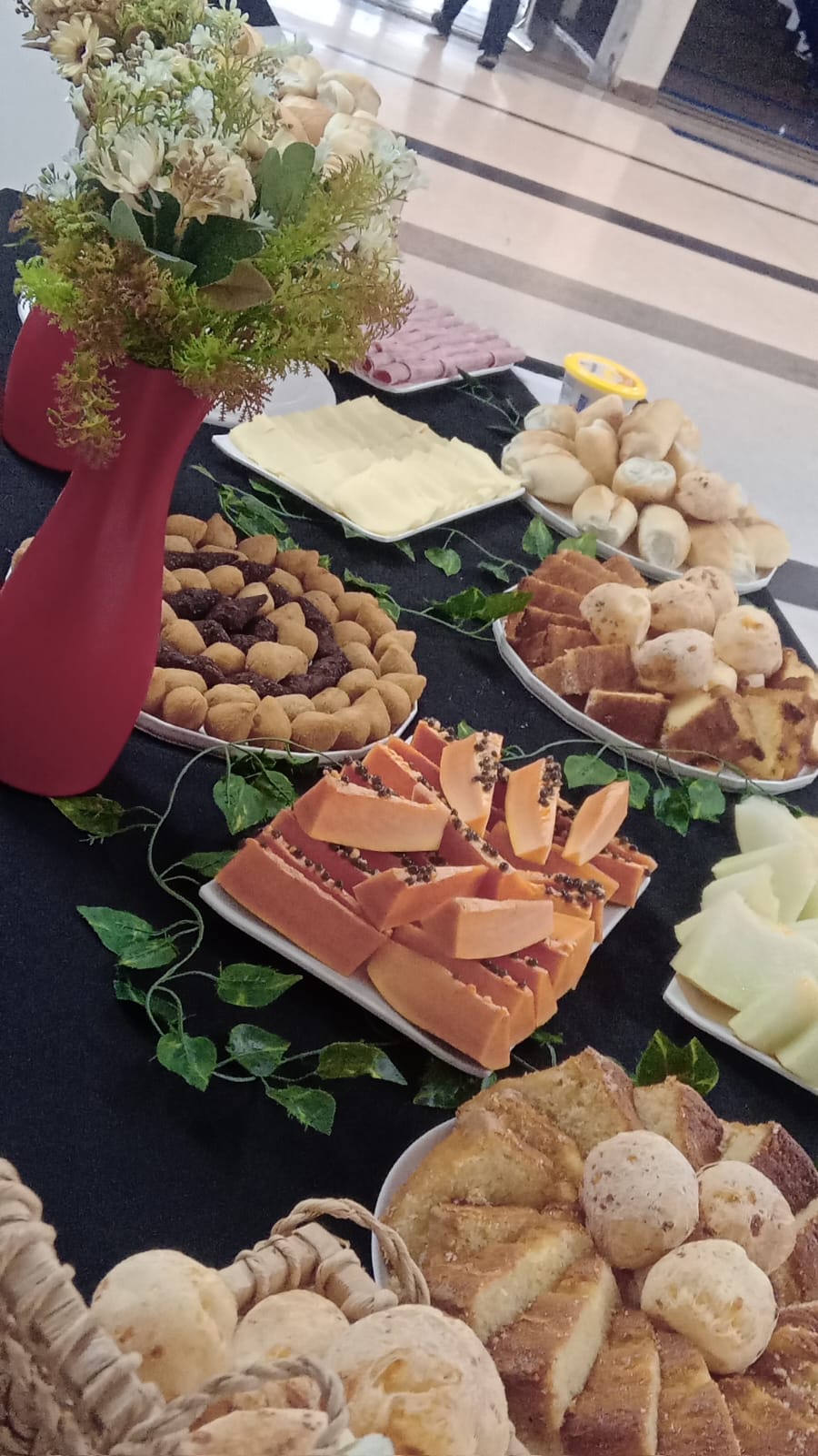 Oferecemos uma variedade de doces, bolos, pães especiais, salgados, sucos, café, chá, água e muito mais. O cardápio pode ser adaptado conforme a necessidade do evento.